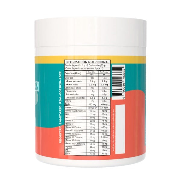 - Premezcla de vitaminas: C, E, B3, B6, B2, B1, A, B8, D, B12