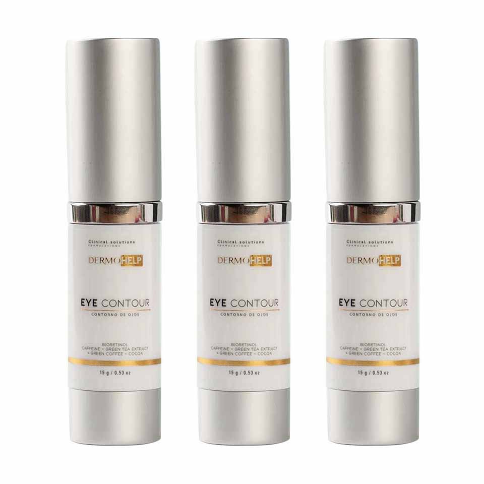 Nuestro DERMOHELP Contorno de Ojos es un producto que nos ayuda a proteger la zona más frágil, delicada y fina del rostro, combatiendo los principales problemas que se presentan: Ojeras, bolsas y líneas de expresión. Contiene Bioskinup Contour 3R, el cual es un activo con eficacia comprobada y con triple acción sobre los problemas del contorno. Este producto también ha sido enriquecido con Bio-Retinol, con el fin de acelerar el proceso de desaparición de las líneas finas de expresión que se forman alrededor de los ojos. Se le ha adicionado Aceite de Camelia Japónica, reconocido por su acción anti-edad, poder anti-inflamatorio y humectante.