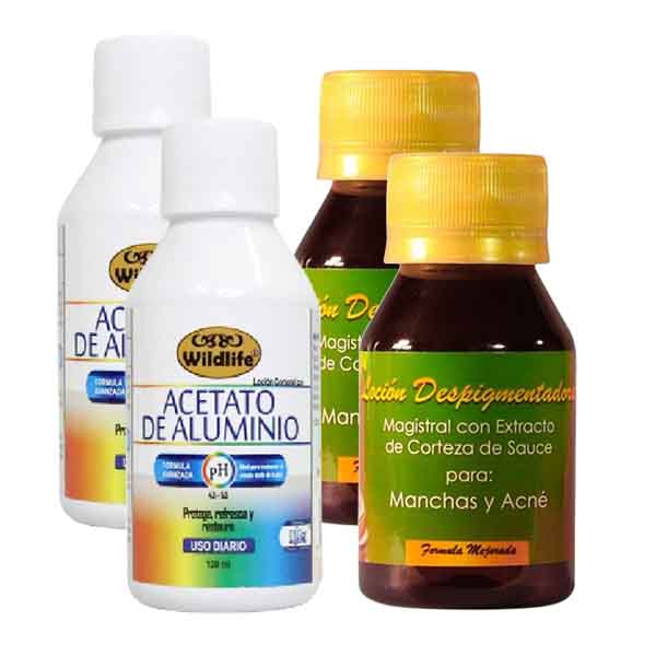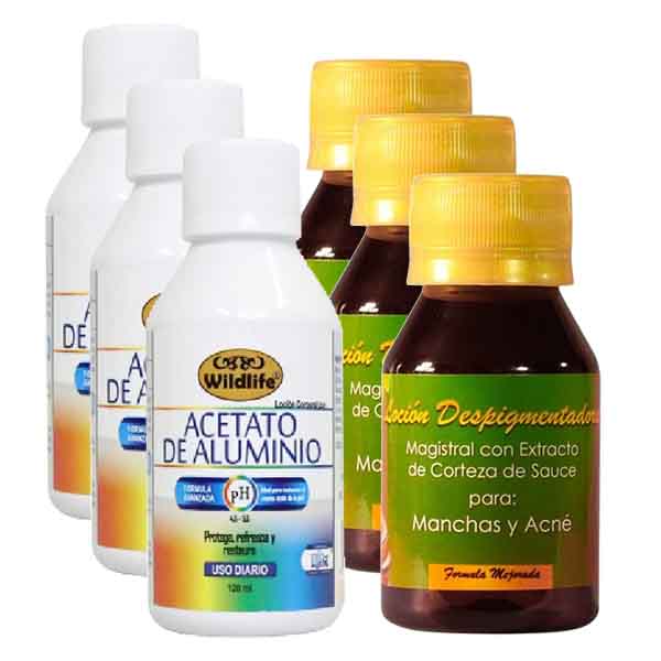 - El acetato de aluminio es una loción tópica que se utiliza como antiséptico con propiedades para reducir la posibilidad de infección y astringente ya que retrae los tejidos y puede producir una acción cicatrizante, antiinflamatoria y antihemorrágica, sus componentes son buenos para todo tipo de piel.