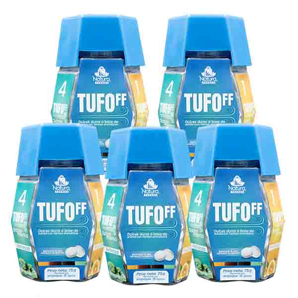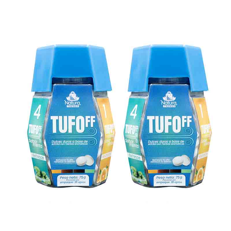 TUFOFF es un caramelo duro sin azúcar, elaborado con Eritritol e infusión de hierbas aromáticas. Su fórmula única combina ingredientes naturales con sabores refrescantes de naranja, canela y menta, ofreciendo una experiencia placentera, duradera y libre de culpa.